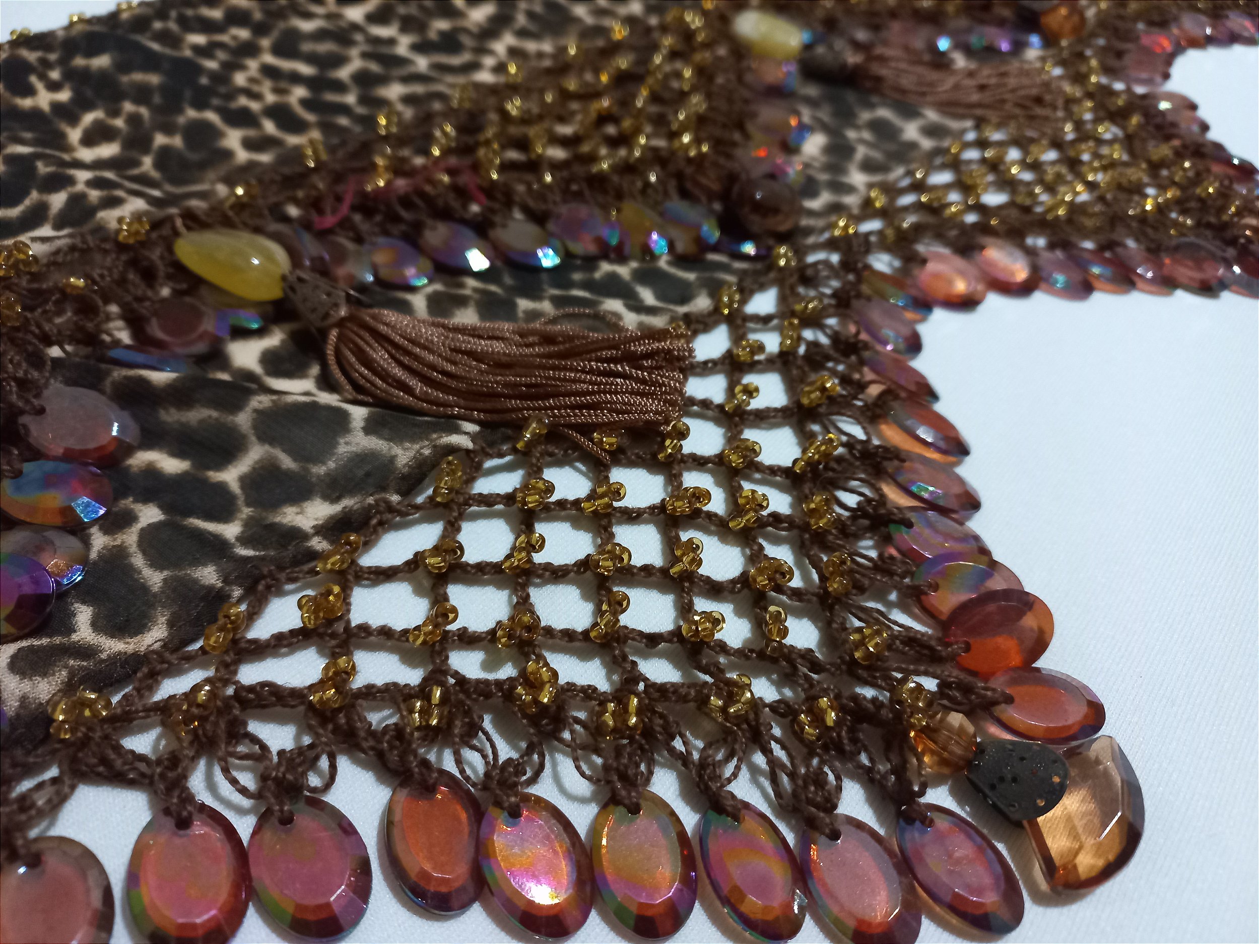 Lenço animal print pedrarias tom marrom